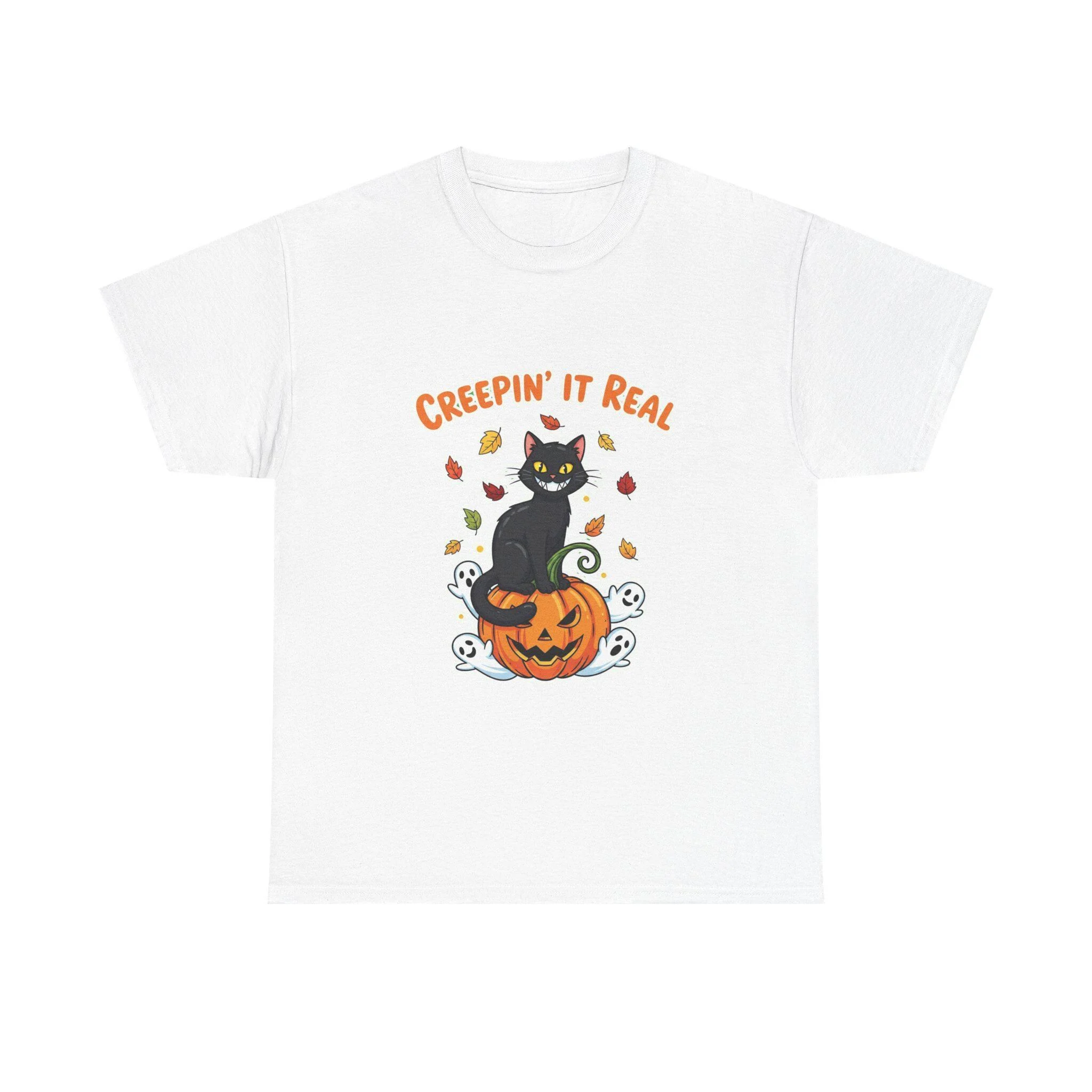 Creepin’ It Real – Halloween Black Cat and Pumpkin T-Shirt