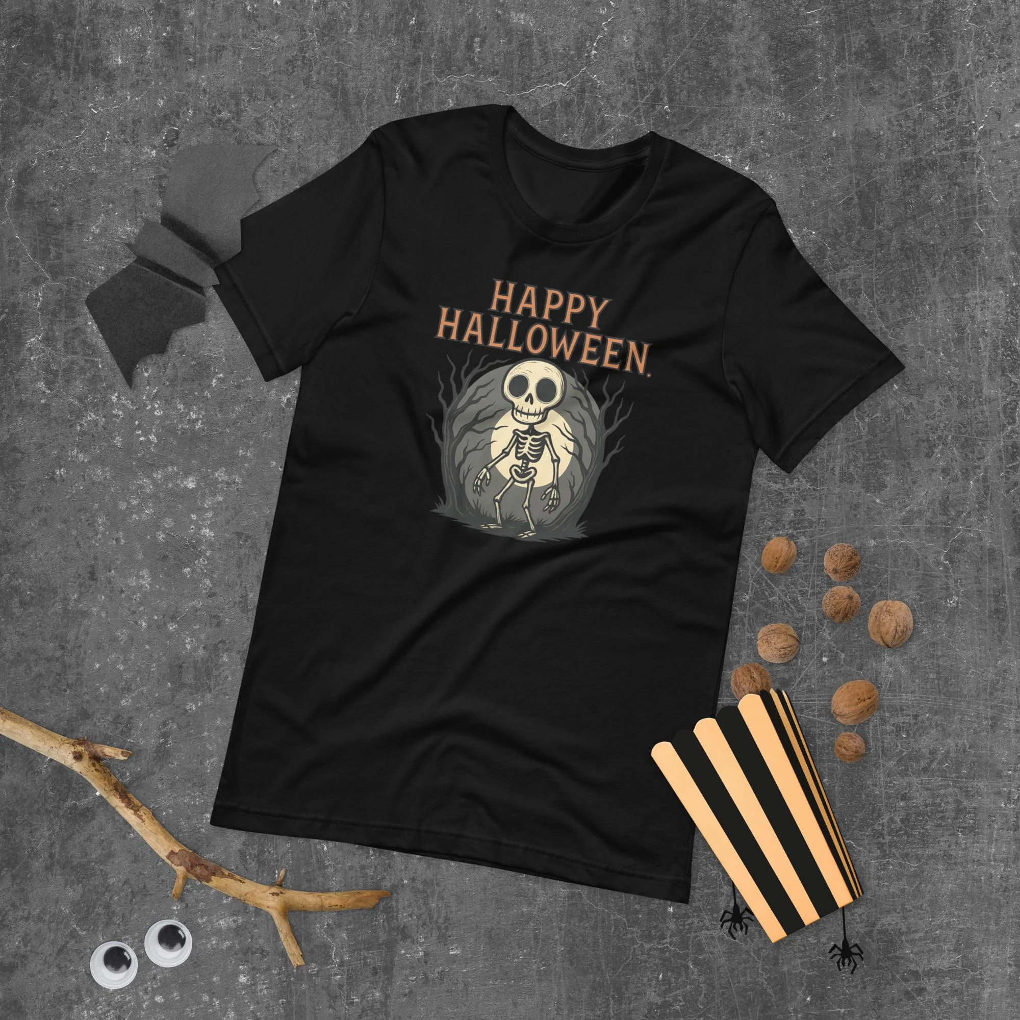 Happy Halloween Skeleton Moon Spooky Woods Horror Halloween Gift Unisex T-Shirt